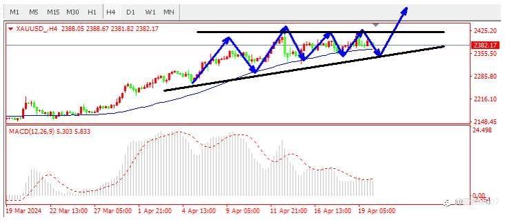 黄金早盘操作思路:2375空,笋2383,目标收15个点,2360