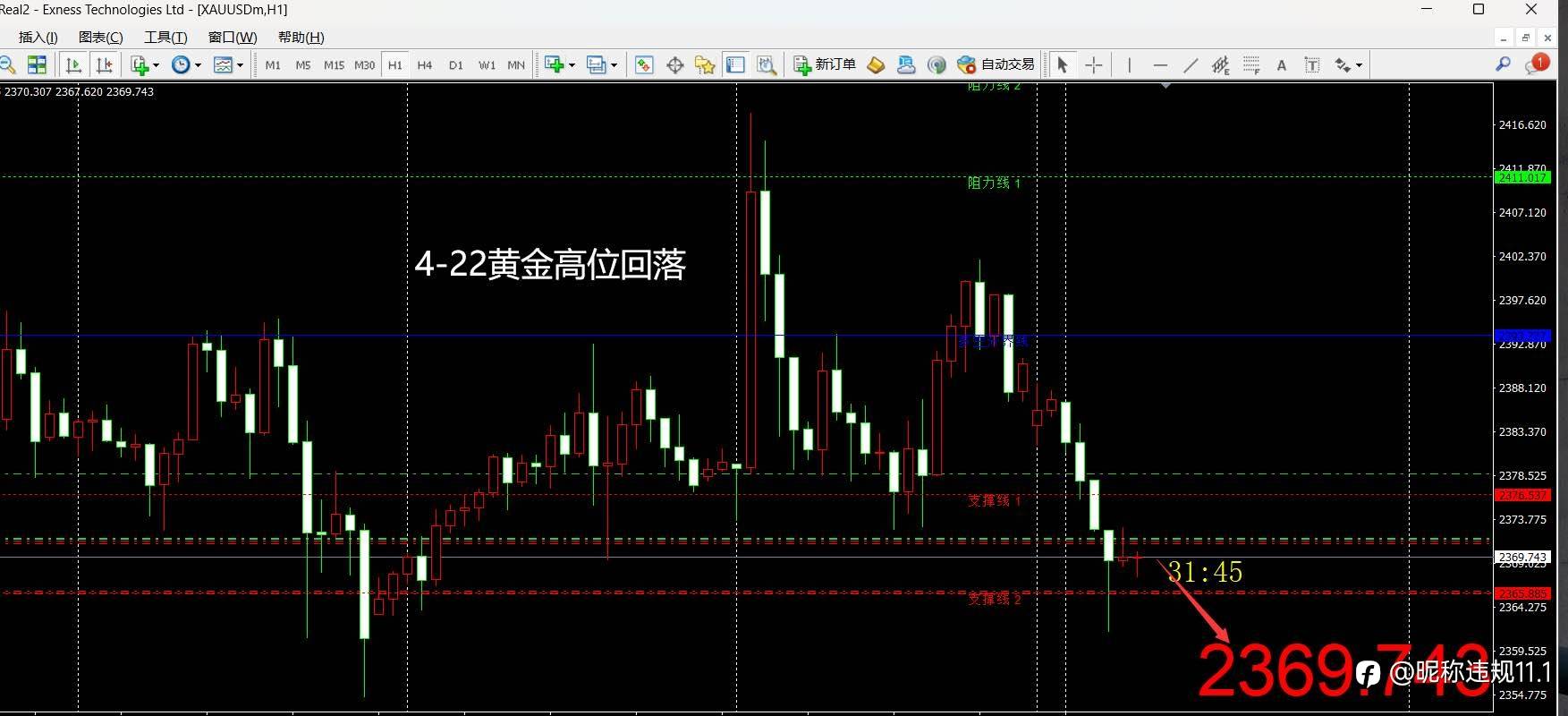 今日短线阻力关注上周五美盘次高点2401,日内若反抽承压此位置则有望迎来日线级别调整,今日下方支撑关注2355-2360附近,压力2400整数关口,日内先行依托此区间保持多空宽幅震荡运行节奏。#交易晒图#