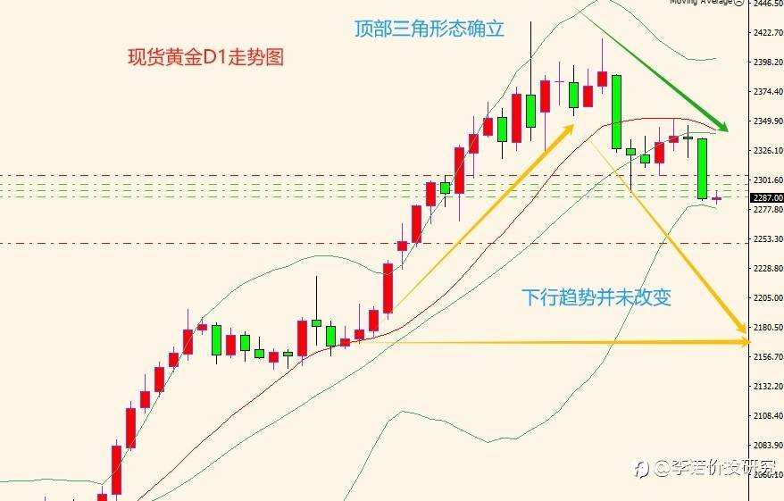 黄金很有可能再次下行,跌穿前期支撑位