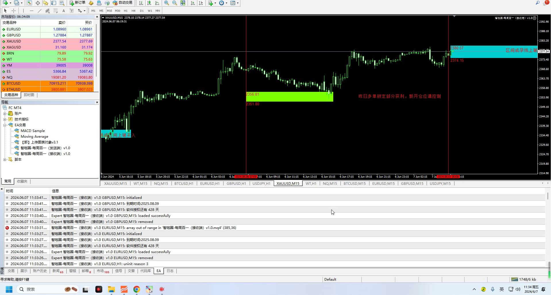 5月7日黄金顺势空单,小赚一点!跟单请走起!