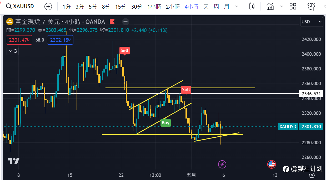 今日黄金方向偏空头,最主要是关注压力位2321这个位置附近