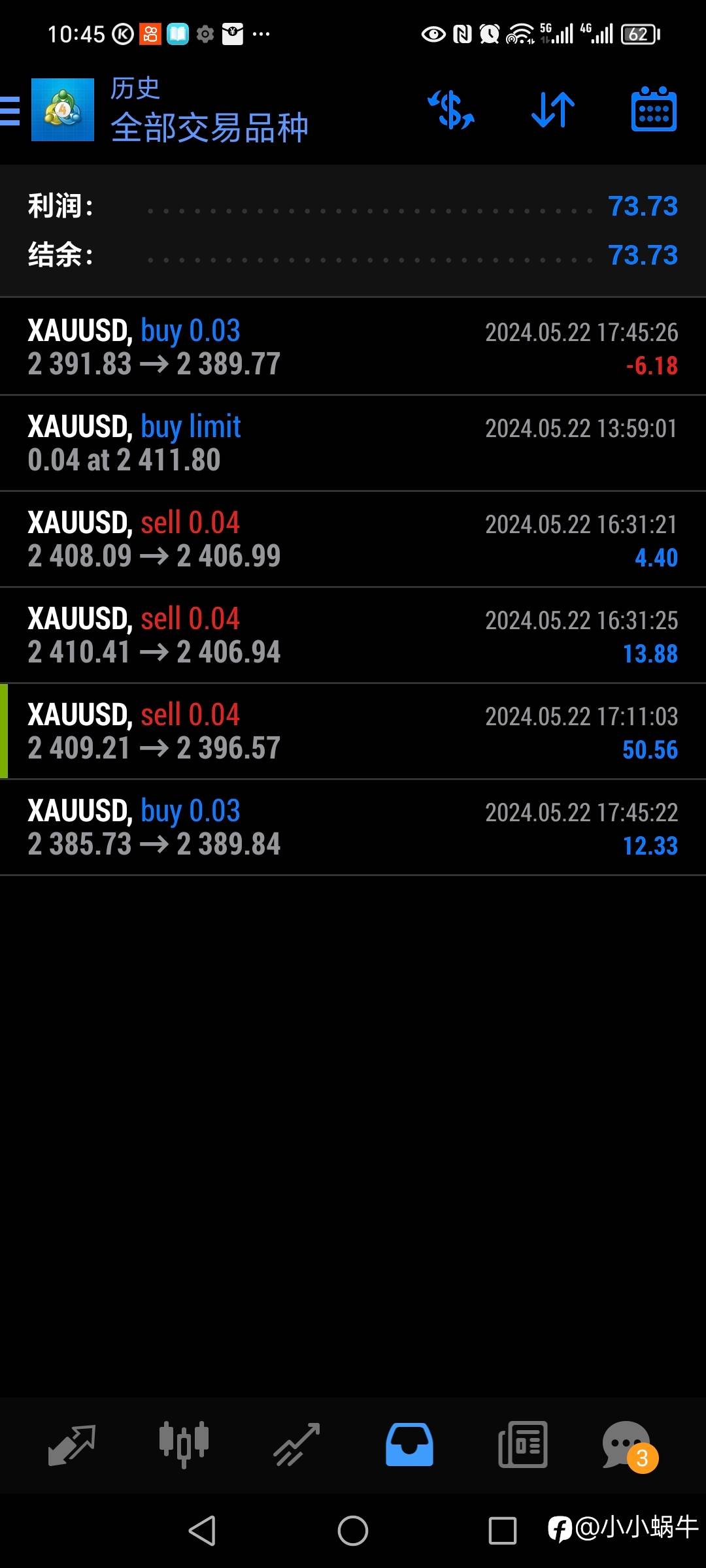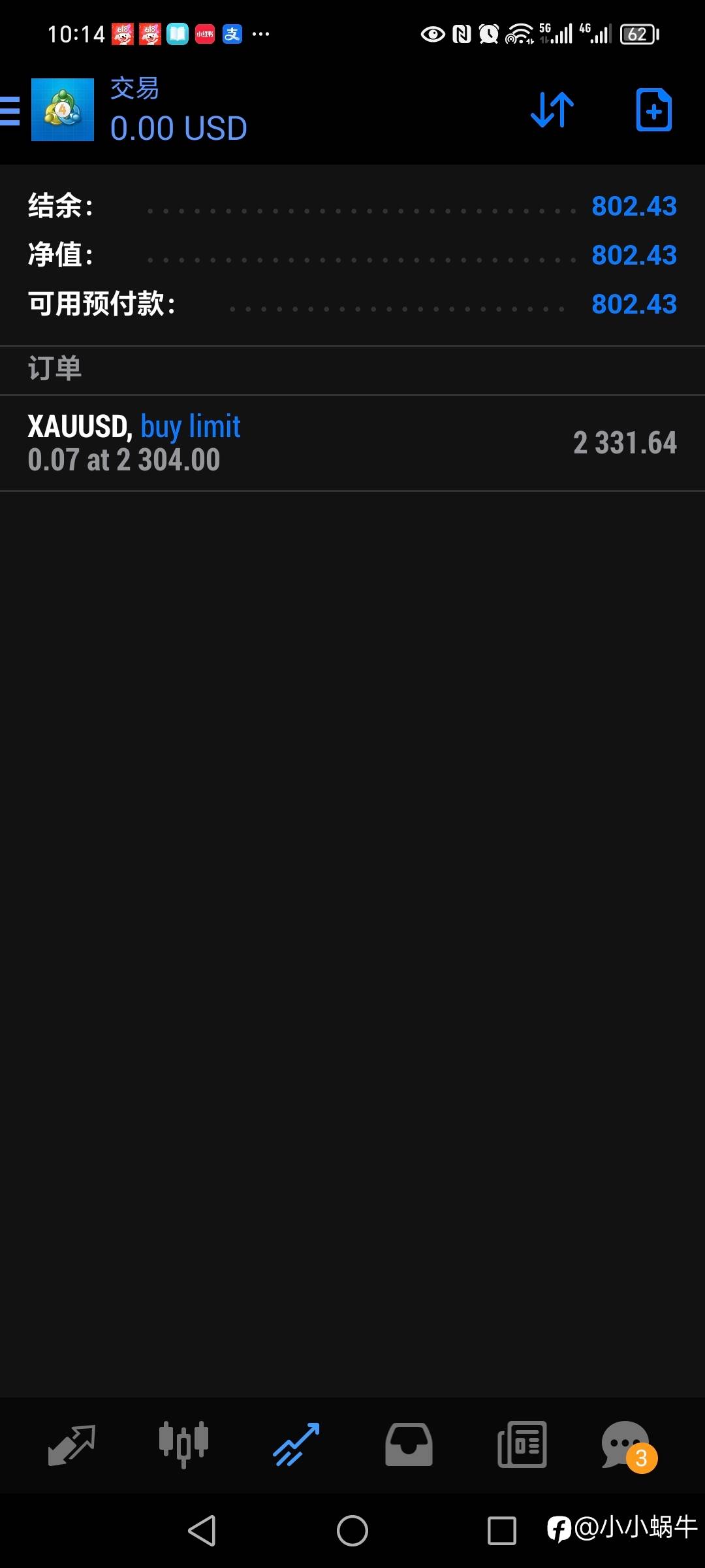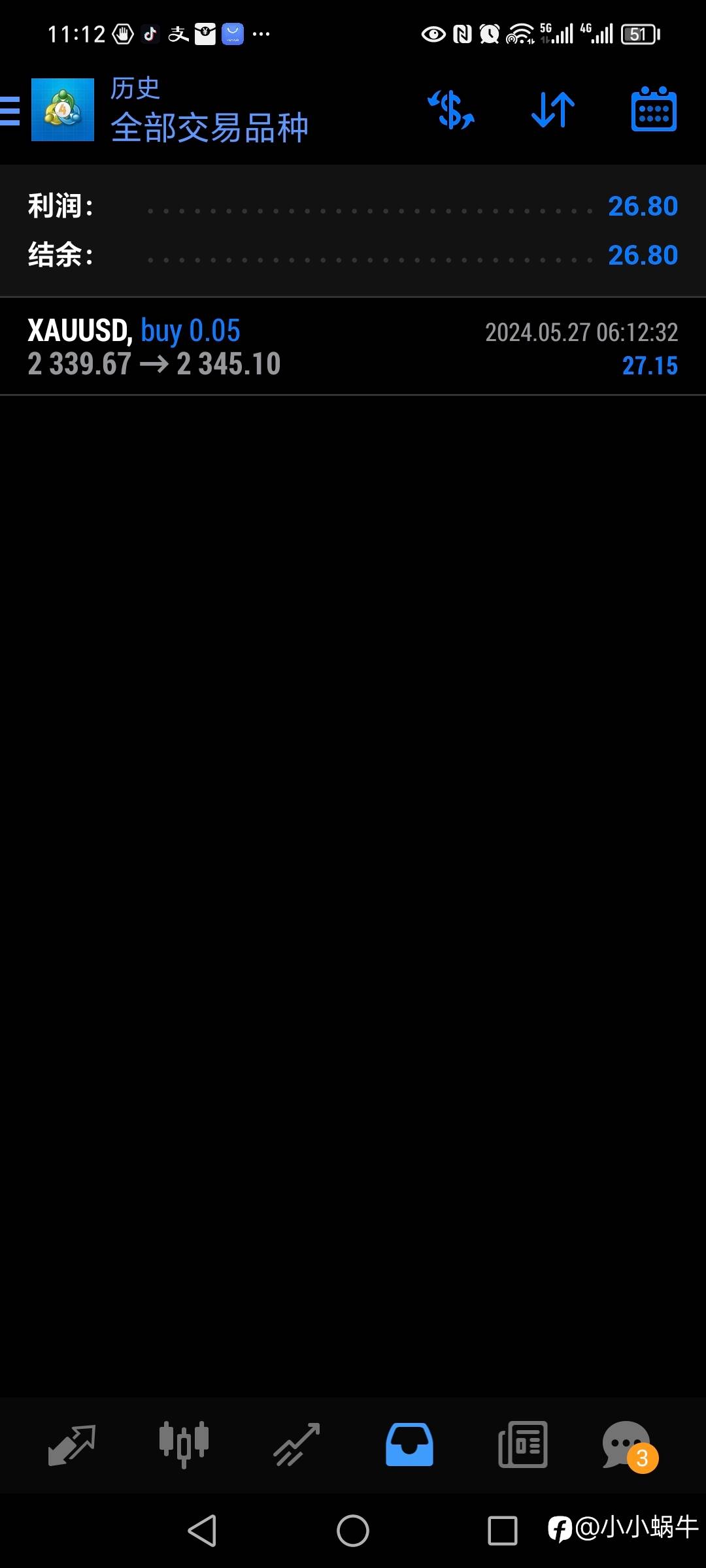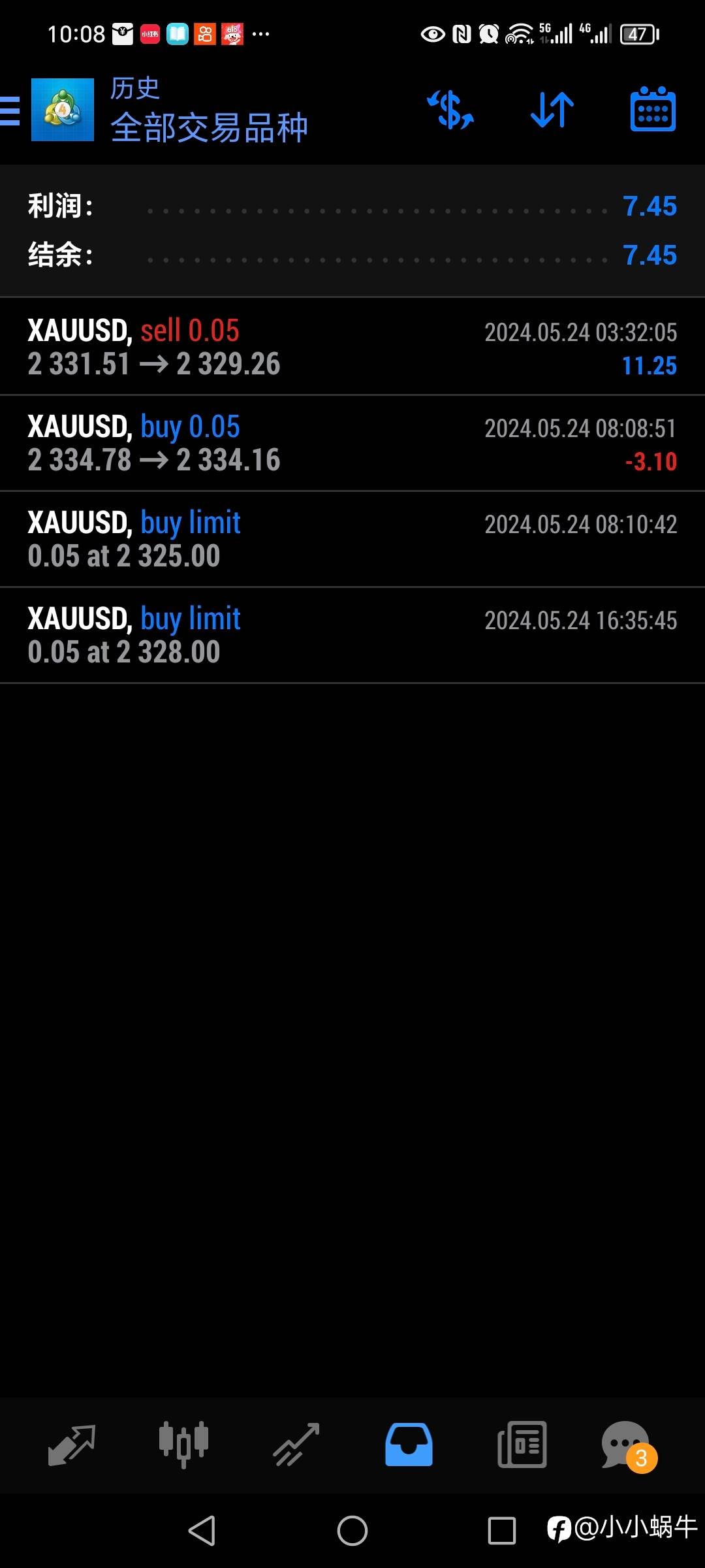 2024年3月31日38美金启航,独创价格行为手工交易策略,不马丁,不扛单,日内波段,因此账号不能做信号源,现移步至7号信号源,敬请关注共同见证复利奇迹!