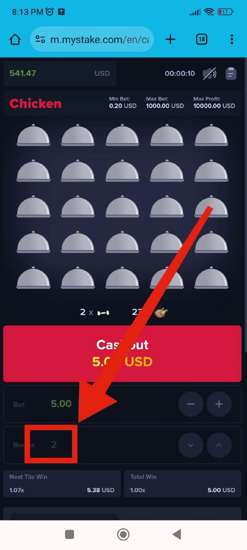 Configuración del bot My stake https://t.me/My_chiken_bot