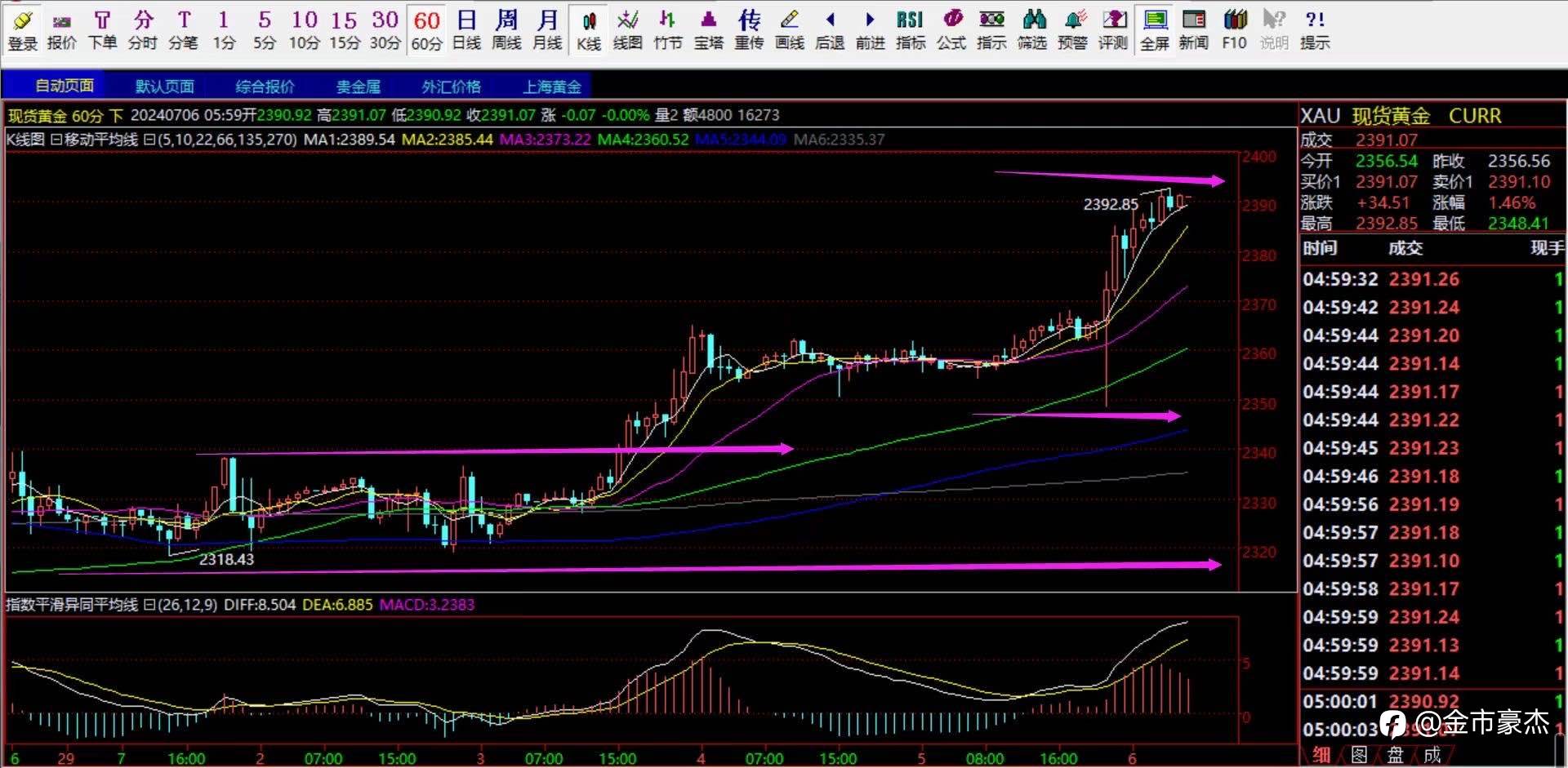 2390-2393做多,止损2385,目标看2400-2405-2410-2415