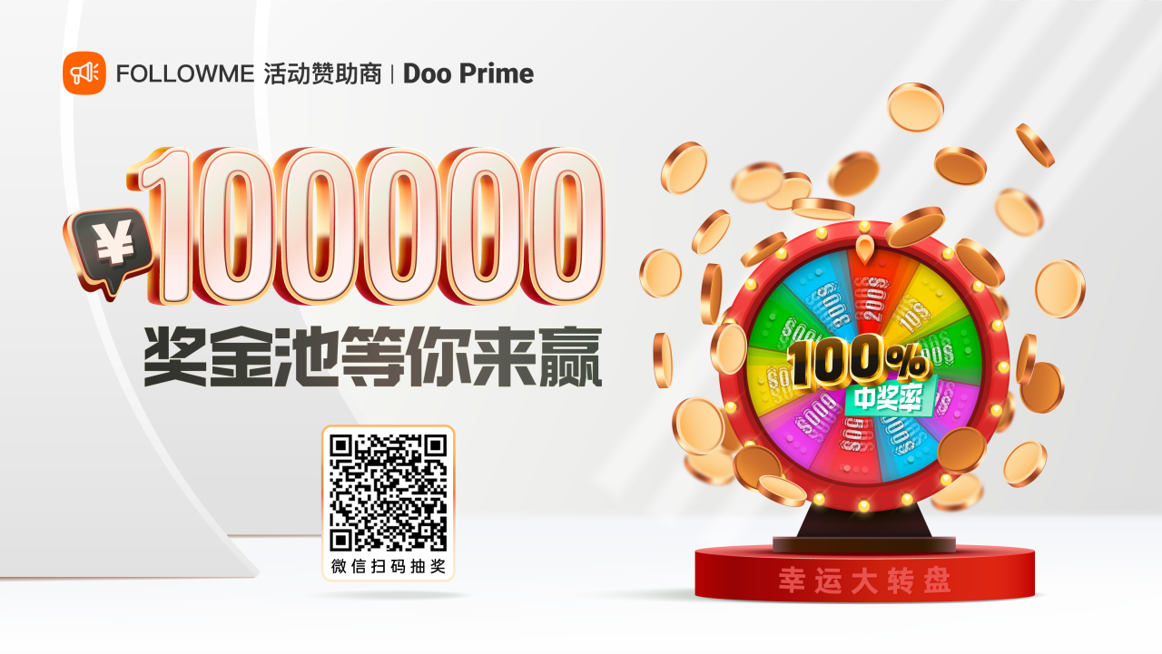 👏 恭喜你成功参加 #DooPrime# 十万现金狂潮,并成功完成一笔交易订单任务,现已成功获得1次转动幸运大转盘机会。2-4个工作日内你将收到 @活动小助 发送的抽奖口令,届时请凭口令扫码抽奖 >> https://www.followme.ceo/c/235...
