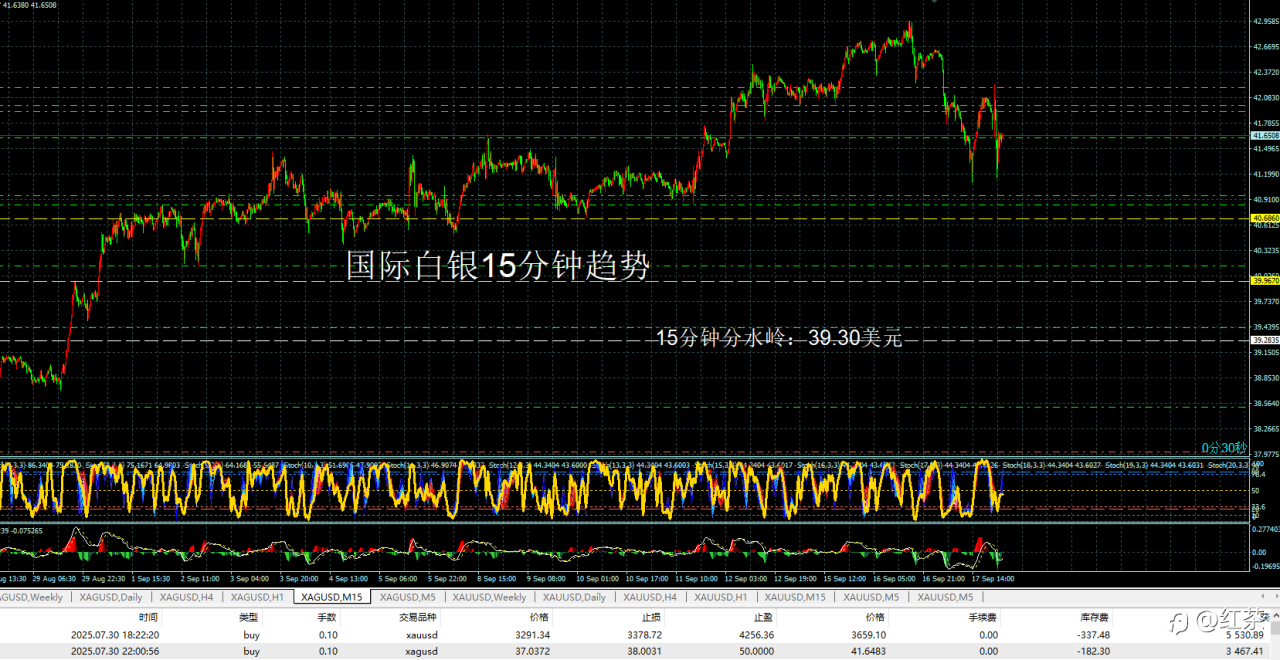 国际白银今天晚上又是一个暴跌!有意思的是,红茶在讲解趋势的时候,从来没有预测过白银会跌的,我一直按红茶的趋势跟踪来应对白银的行情。国际白银的15分钟级别是下跌的趋势,所以只需要老老实实的等待入空的时机就可以了。