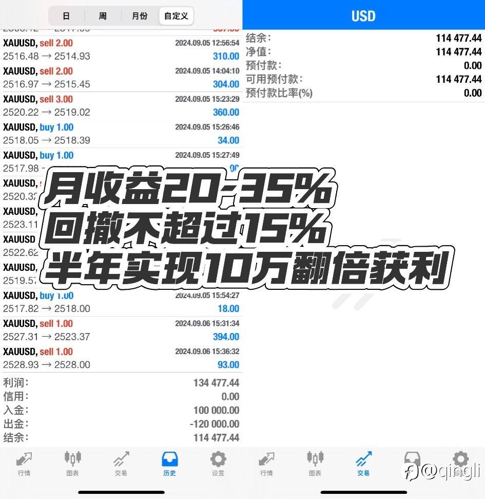 10万美金增值中,资金充足,升级策略,黄金定制手动策略,稳定翻倍。月收益20-35%左右。回撤在15%内。#XAU/USD# #黄金一战,你赚了没# #黄金外汇解盘# #外汇动态#