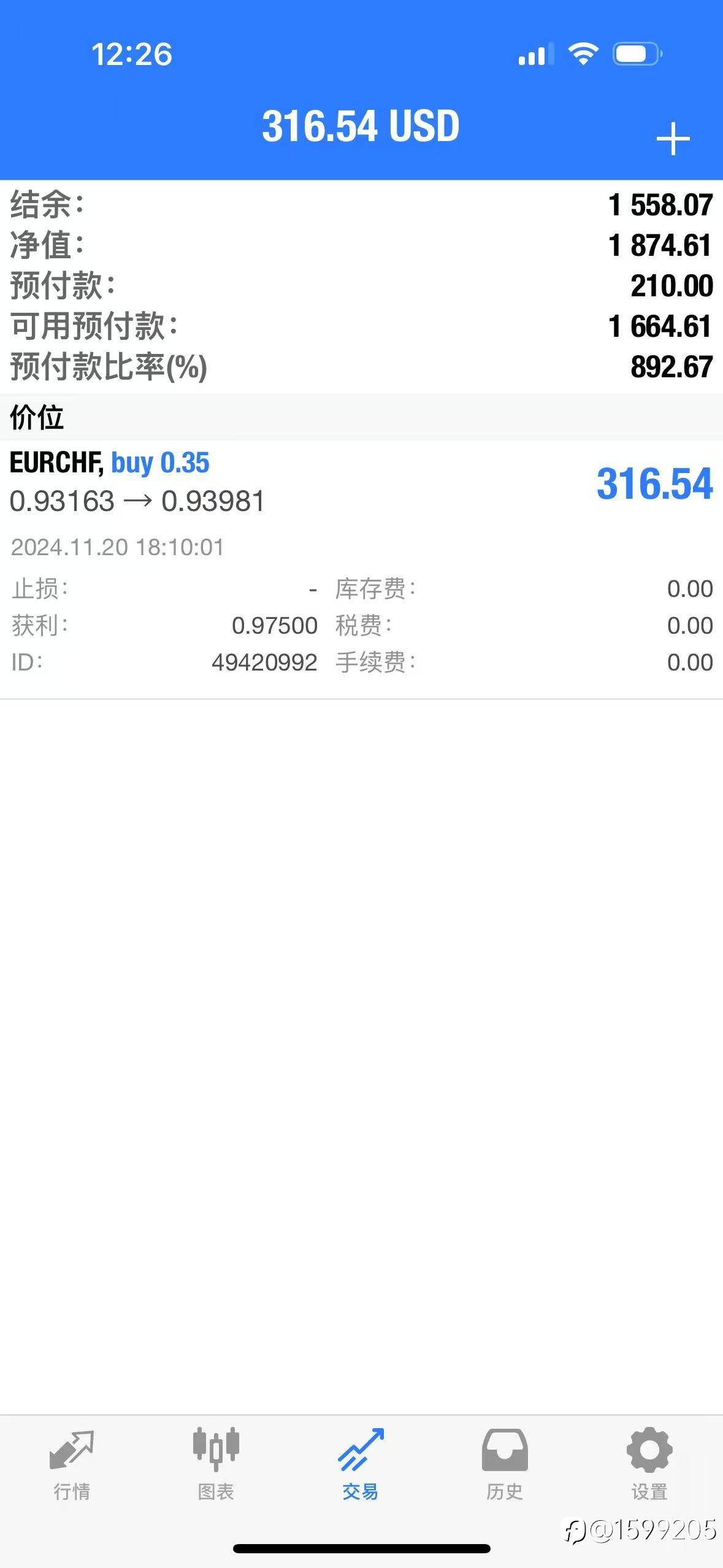 2024/11/5 余额1482.1,净值1482.1,浮盈0
