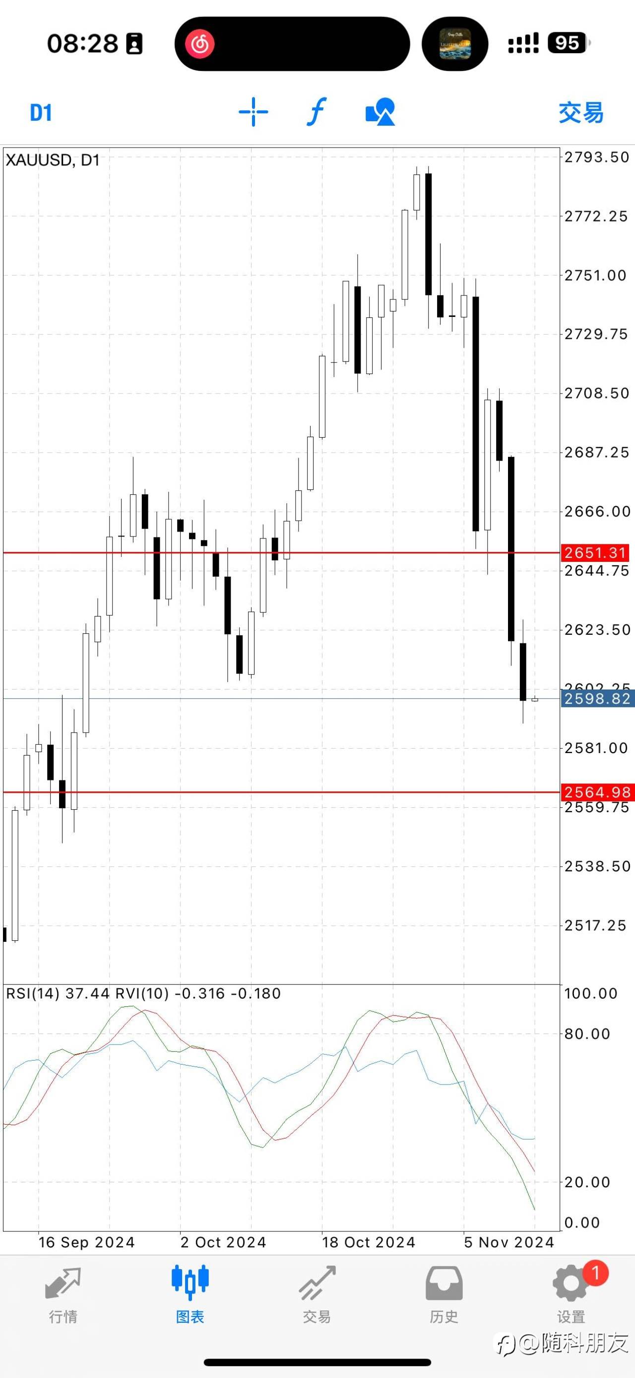 金 博弈周线大跌,下方2560,上方2649。看好震荡后加速下走。破49谨慎看空。#XAU/USD#