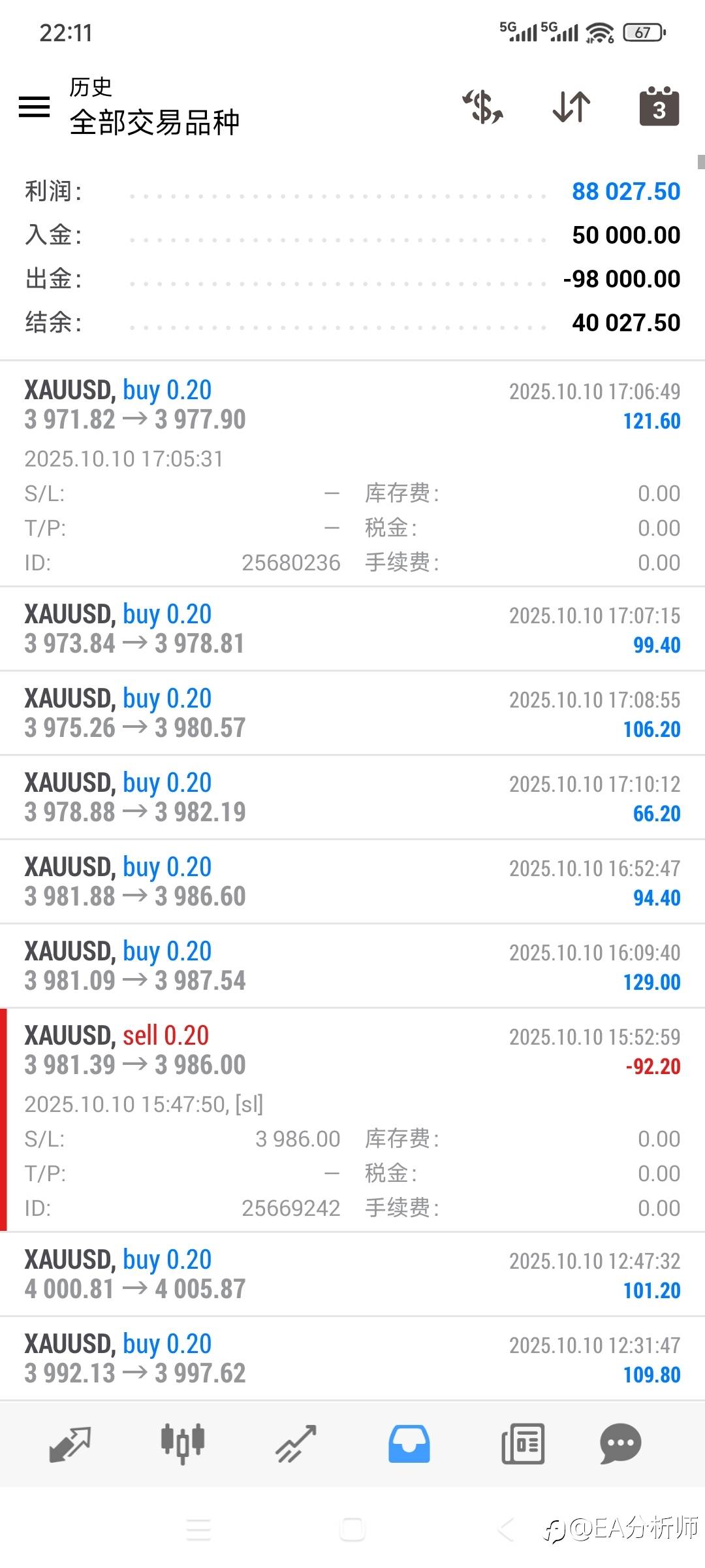 黄金日内波段手工 经历各种大行情,基本不持仓过夜 ,六个月800%,目标1000% #XAU/USD##创作者##你在交易中自律吗##社区里的交易寿星##爆仓前三分钟倒计时##挑战全网单笔盈利点数##交易高手与新手的区别##手动止盈还是设置止盈##晒单打卡赢好书#