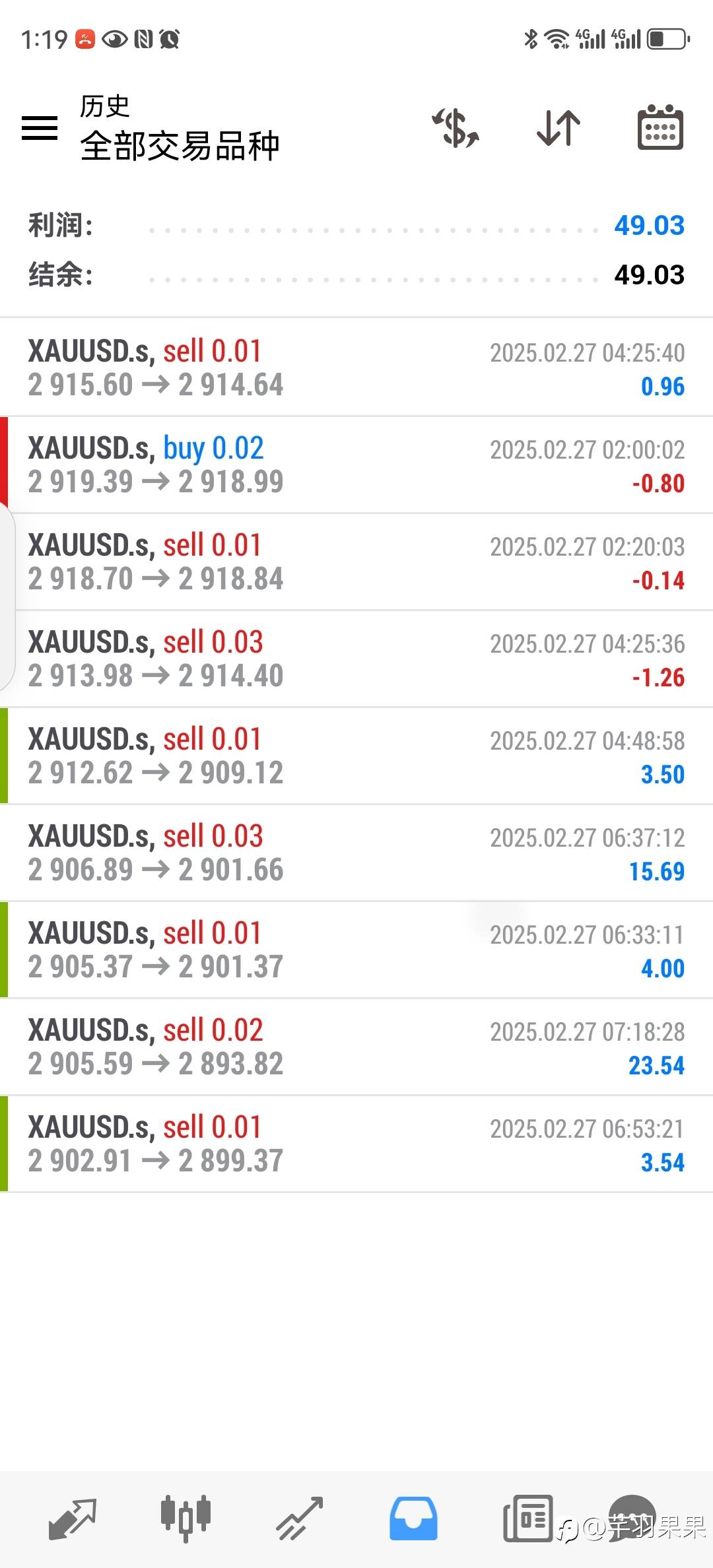 今天完成了50美金的任务了,也参加了德普的交易员比赛,盈利30美金左右,目标也是50美金每天,加油🙂🙂🙂🙂🙂