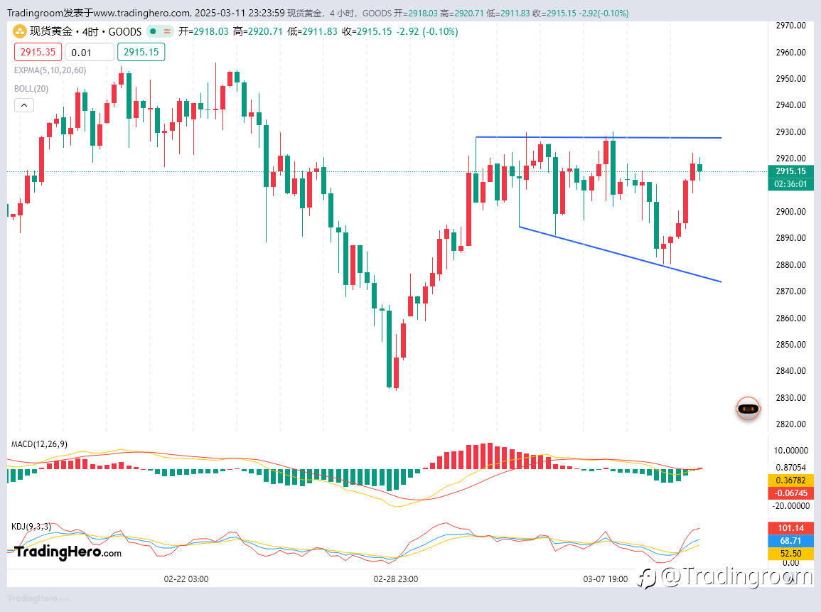 今天黄金被定义为弱震荡走势,向下👇缺一口气,最低去了2895按理一口气能去2880,然而就是一口气调回去了。没脾气,JUST wait!