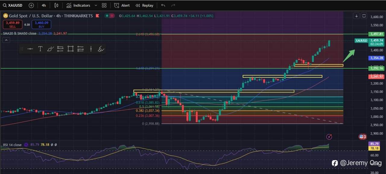 📊 黄金持续狂飙,今日最高冲至 $3,455,距离我们预期的 $3,500 仅剩450点!恭喜持多者,走势完全命中!