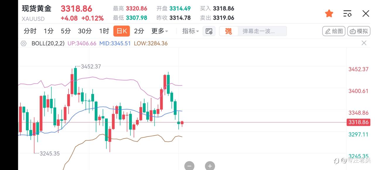 #XAU/USD#4H布林带上轨3322承压机会,当前3321已进空,目标3302/3289 逆势空单,严格风控,小止损博取大利润#每日交易打卡#