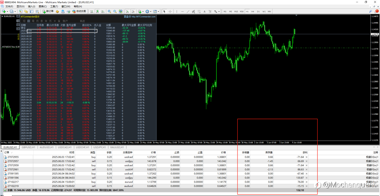 货币循环对冲,已经平仓一组,还剩4组继续持仓