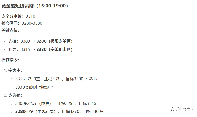 - 多空分水岭 ➜ 3310-3315(强弱切换关键)