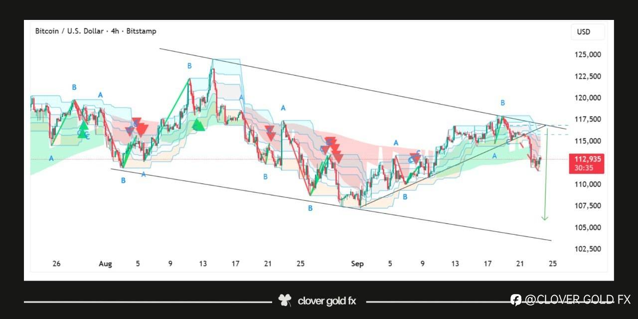 BTCUSD on the 4H is showing weakness after failing to hold the trend line support inside a larger descending channel structure. The market completed a clear five wave rise and has now entered a corrective phase with the break suggesting further downside movement toward the lower boundary of the channel.The sentiment around Bitcoin remains under pressure as regulatory uncertainties stronger US dollar and cautious risk appetite continue to weigh on digital assets. Investors are closely watching central bank policies and global liquidity conditions which play a key role in the flow of capital into cryptocurrencies. The technical break combined with a challenging macro backdrop strengthens the case for extended correction before any new bullish momentum develops.