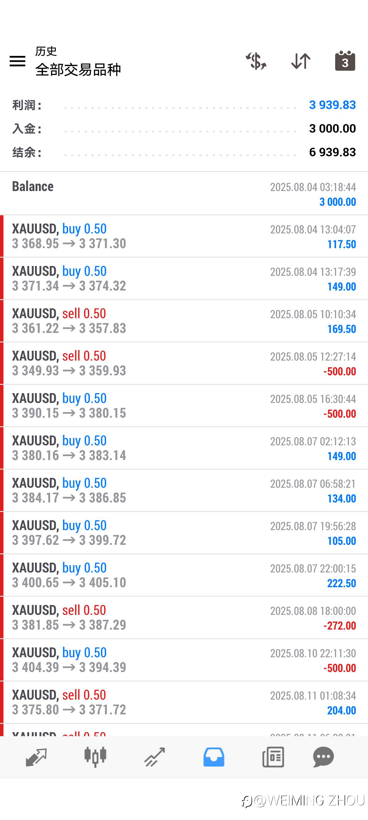 8.4号开始3000 目前6900 收益120% 知行合一 每次0.5手 止盈止损带好 就是拿结果