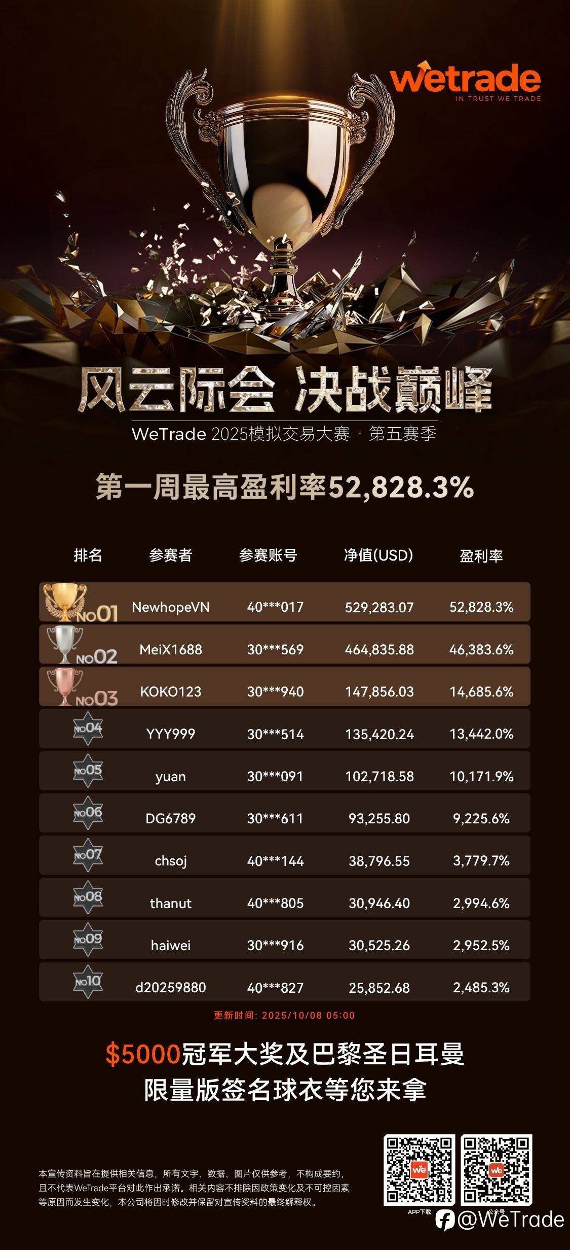 🏆 WeTrade 模拟交易大赛 第五赛季火热进行中!