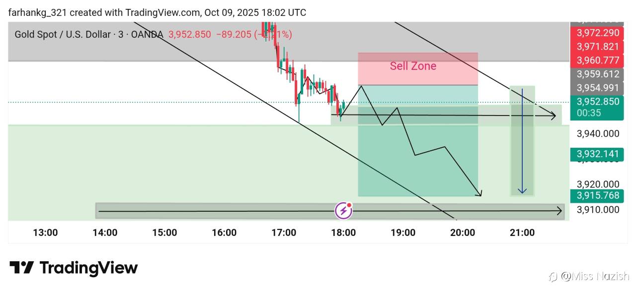 Gold has fallen more than 100 points after failing to hold above 3952. Sellers remain in control, with price now testing the 3920–3910 support area. A break below this zone could extend the downside move. 📉