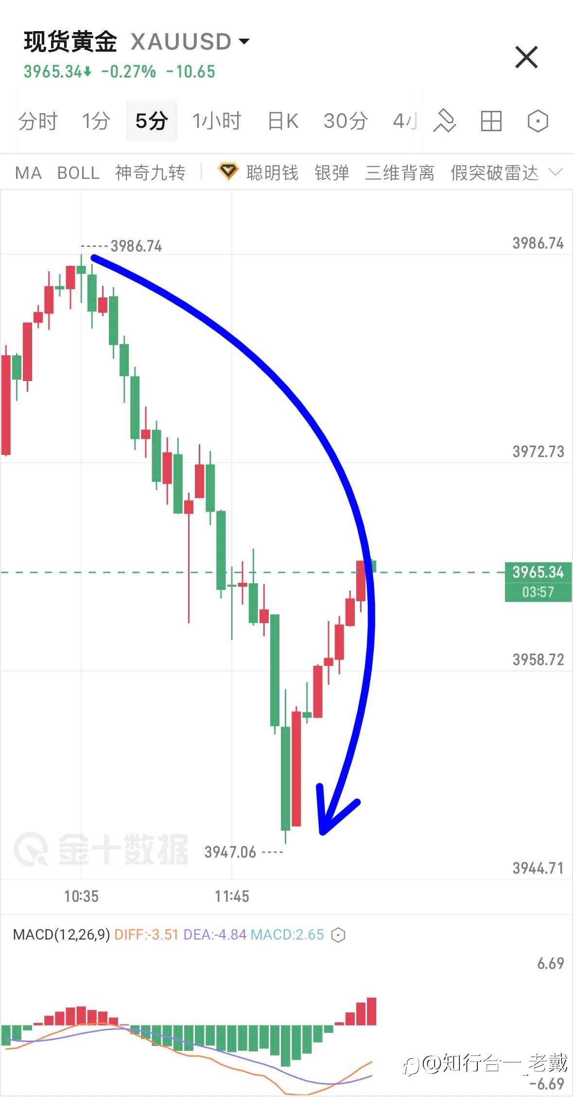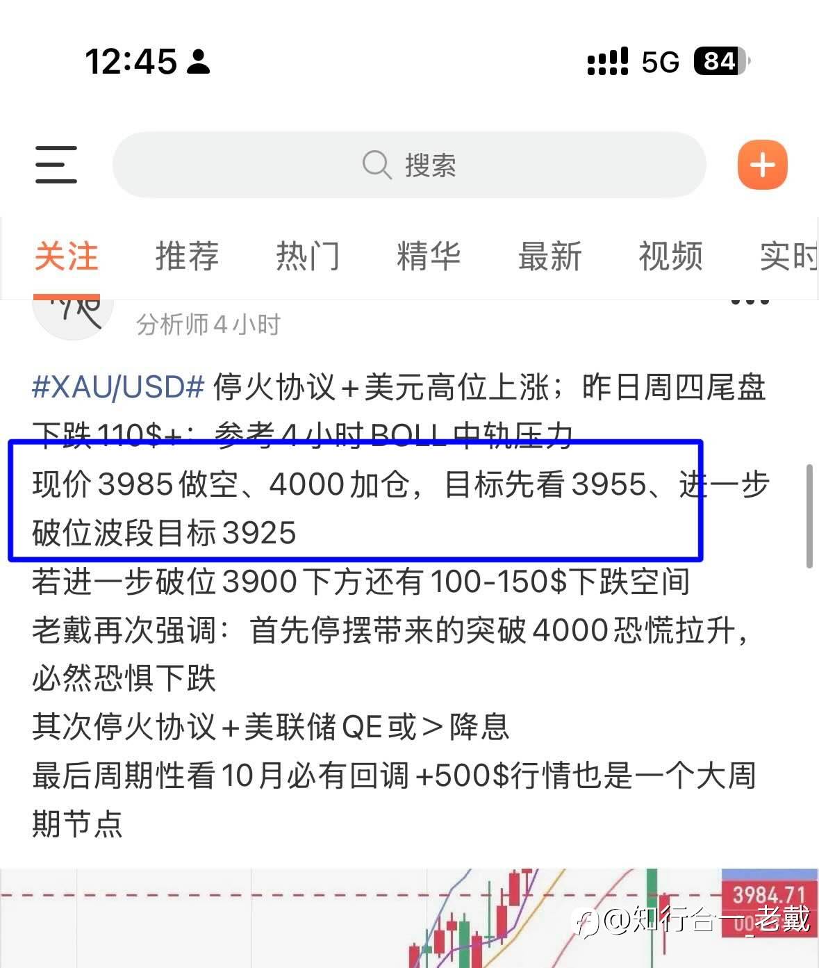 #XAU/USD# 周四突破4000暴跌120$+行情试探3950下方,老戴说:市场考验不仅是心态,更是对趋势+节奏判断;还有仓位管理+执行力