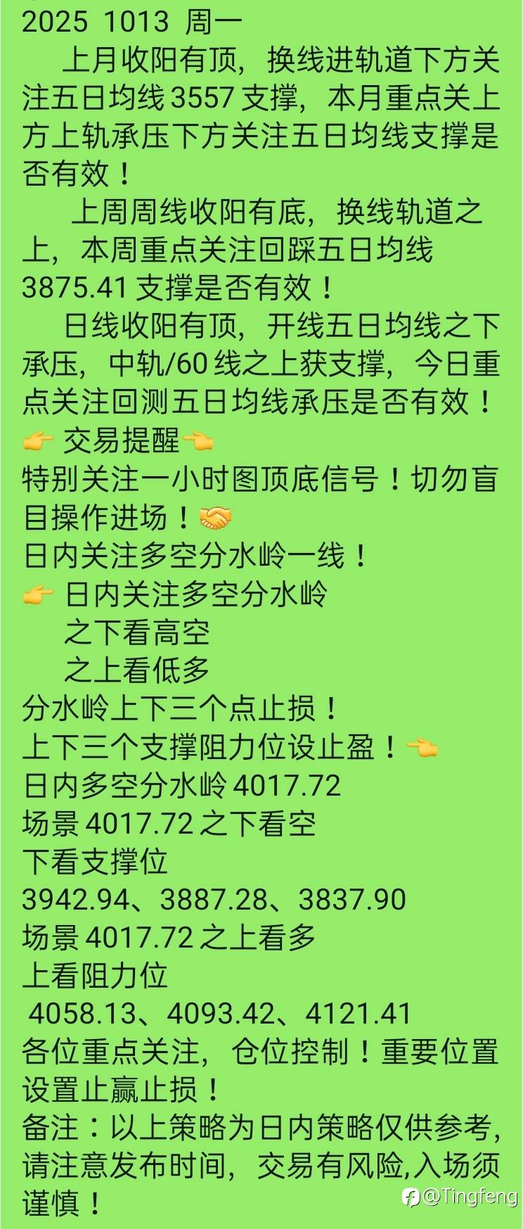 日内多空分水岭4017.72