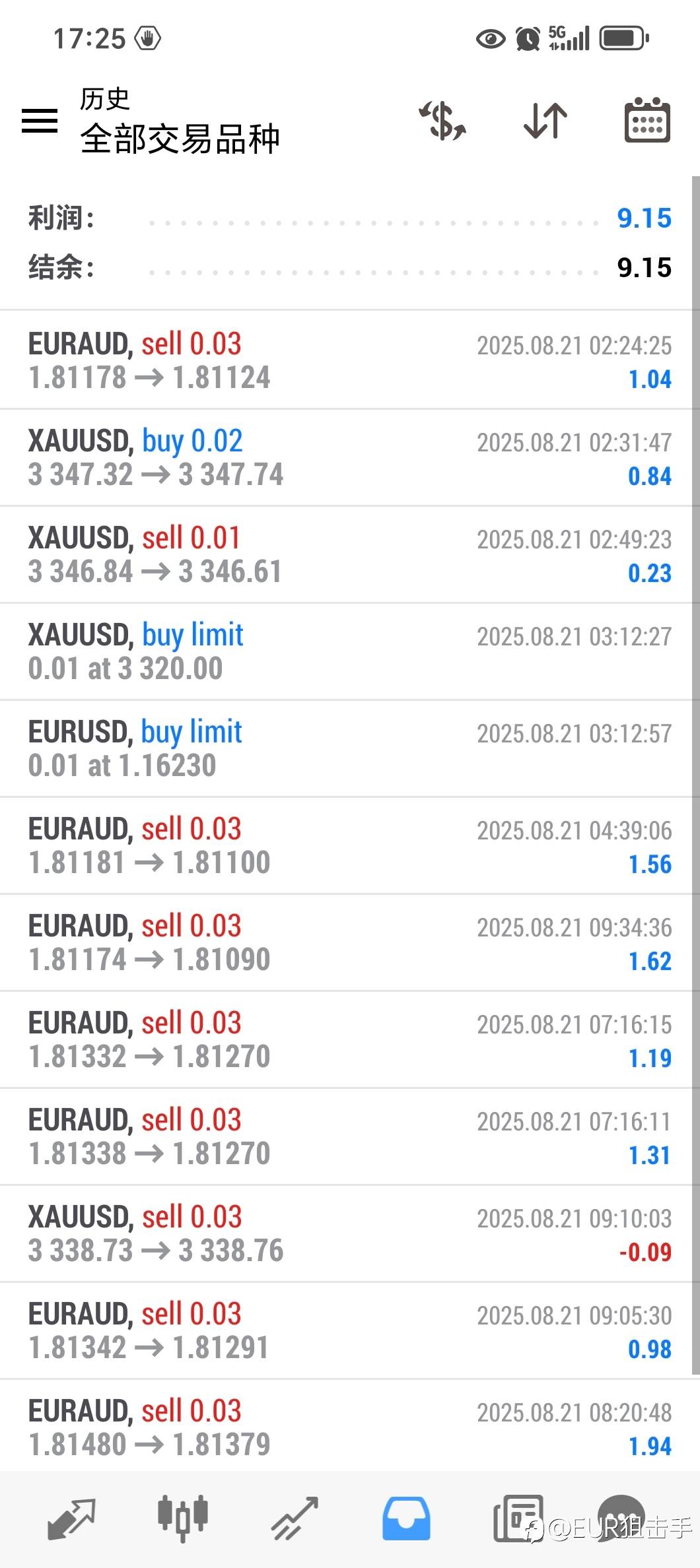 最近出差没有更新,看看昨天的盈利