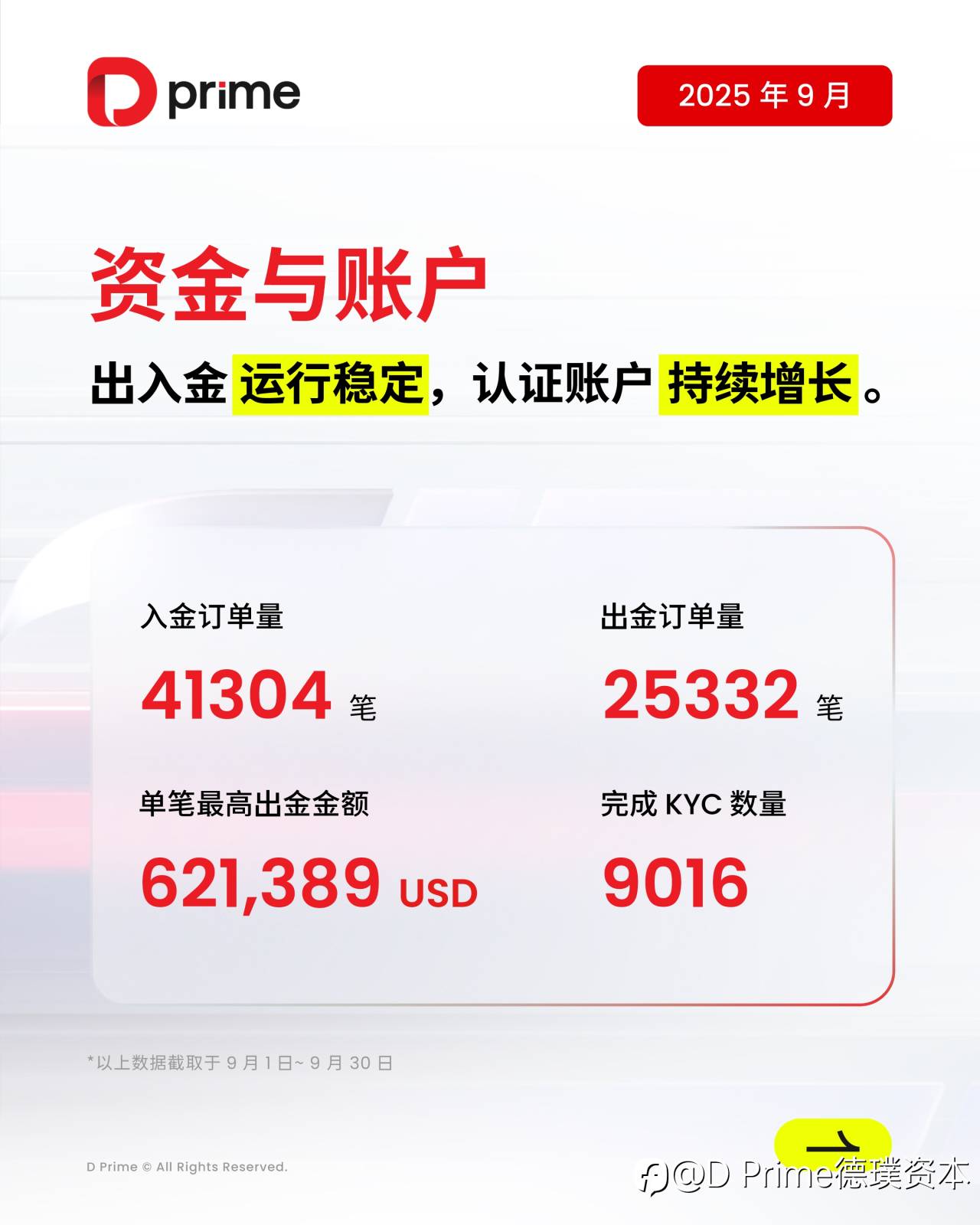 2025 年 9 月 D Prime 稳健运营数据﹕
