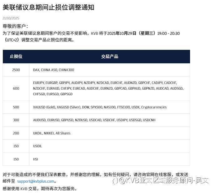 美联储议息期间止损位调整通知