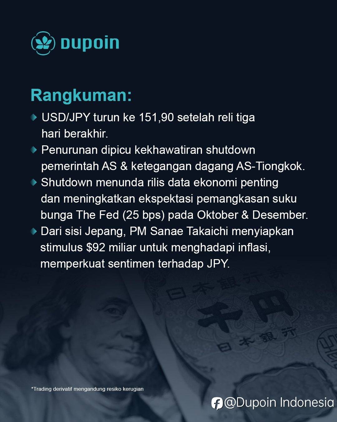 #DupoinUpdate #ForexMarket #USDJPY #MarketAnalysis #TradingInsight #TheFed #ShutdownAS #ForexIndonesia #DupoinTrader #YenStrength #DollarWeakness #MarketNews