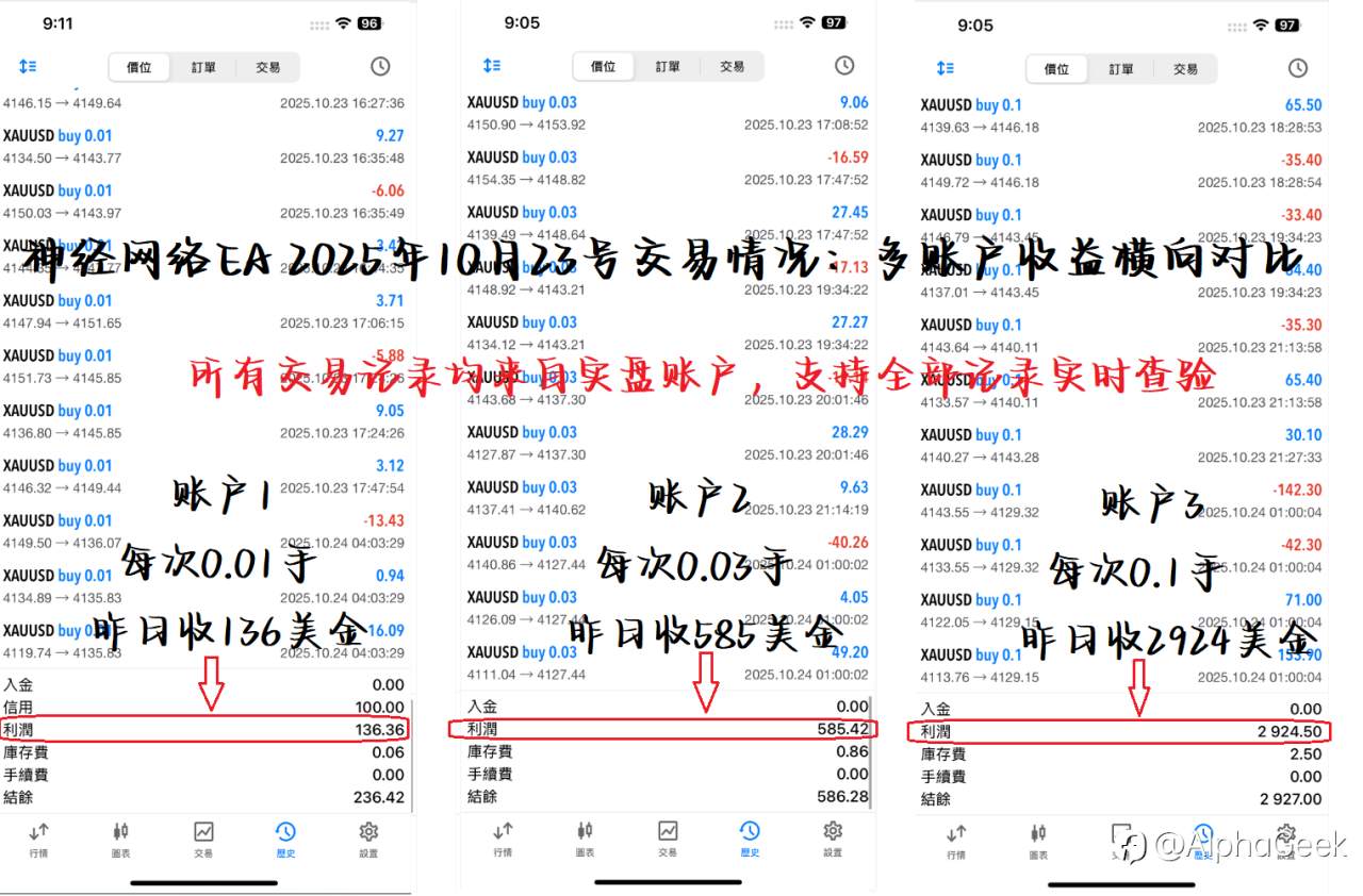 神经网络EA · 多账户实战对比