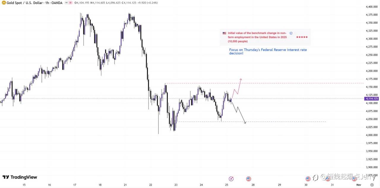 #XAU/USD# 目前黄金上行压力位依然在4160附近位置,下行支撑位在4050附近位置!
