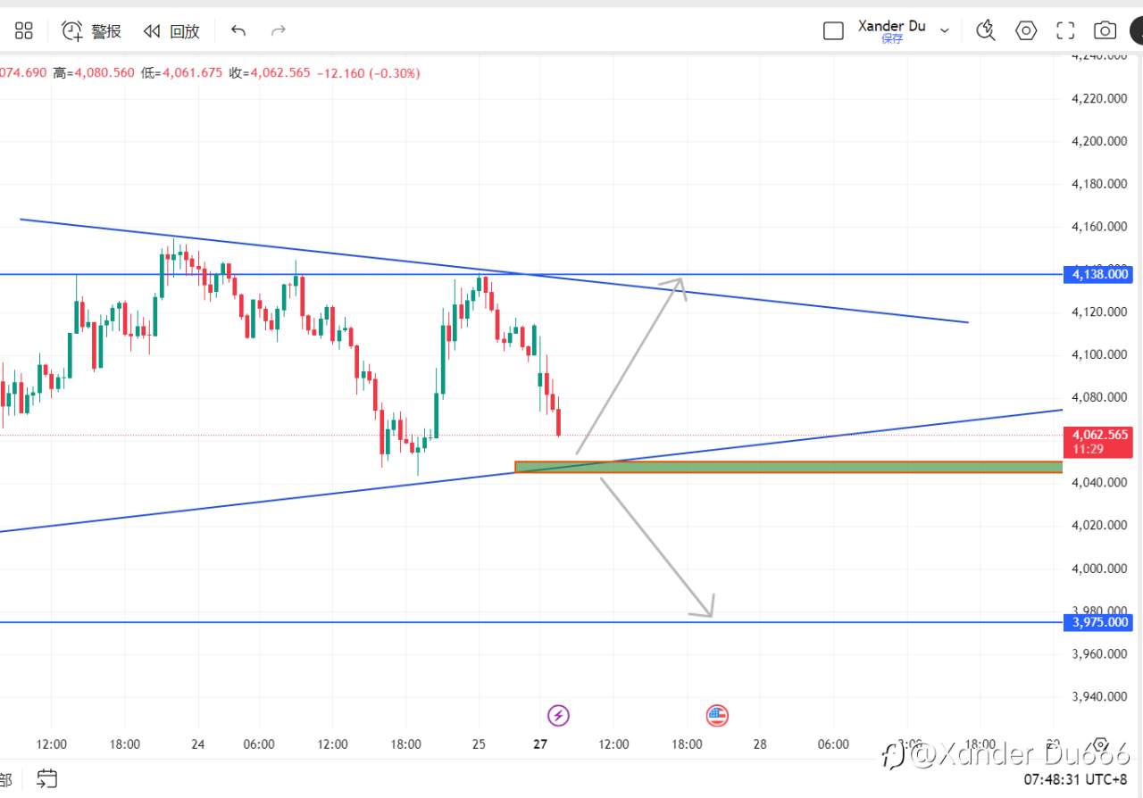 跌破4050轻仓空,止损4060,目标4015,3998,3975