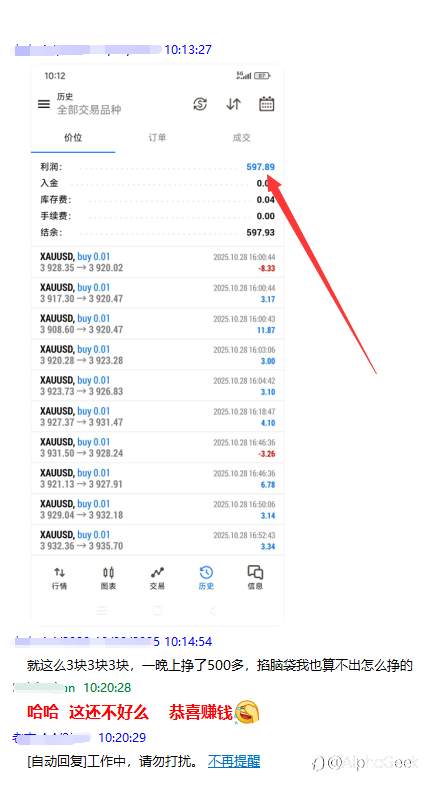 多笔XAUUSD交易持续盈利,小单稳健累积。