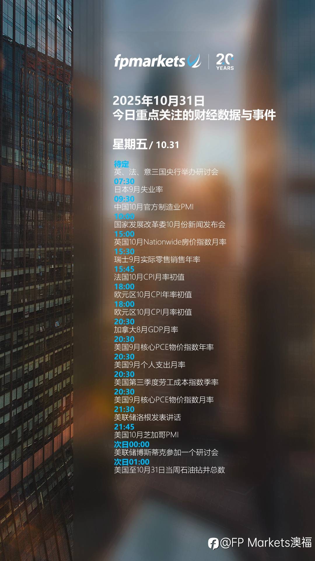 【FP Markets今日重点关注的财经数据与事件:2025年10月31日 周五】