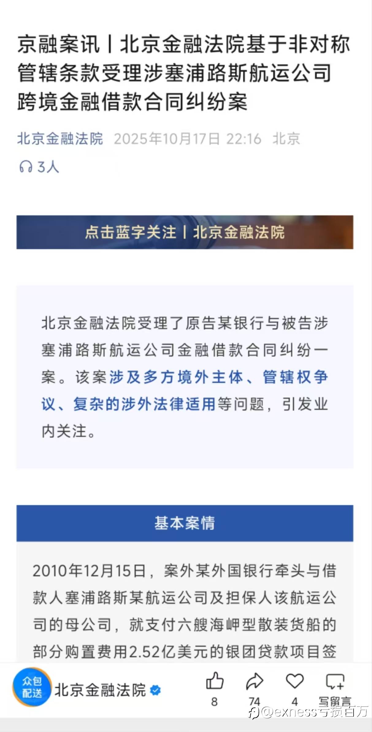 看了金融法院的文章,我决定在北京金融法院起诉exness