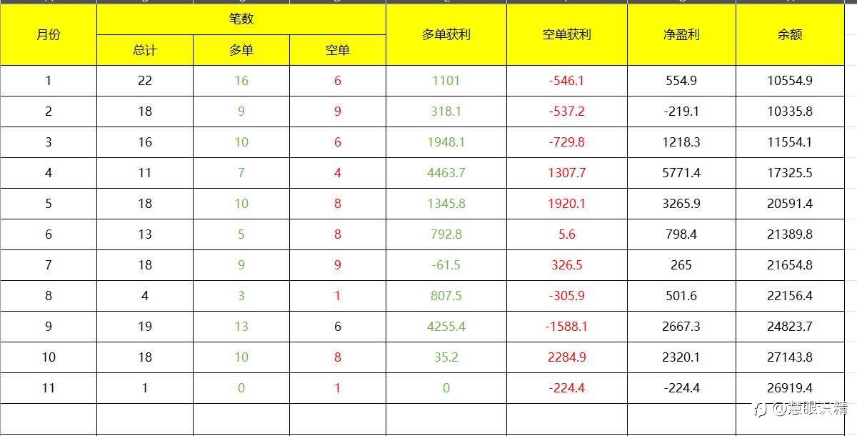 #XM# 用今年现货黄金的数据测试了下自己的交易系统,起始资金10000美金,固定手数0.1,把每个月的交易情况用表格统计了下。保证利润的前提下,还能让自己在交易市场上长期的生存下去。我的交易系统主打低频,不适合短期追求暴利,讲究的是一个细水长流。#XAU/USD#