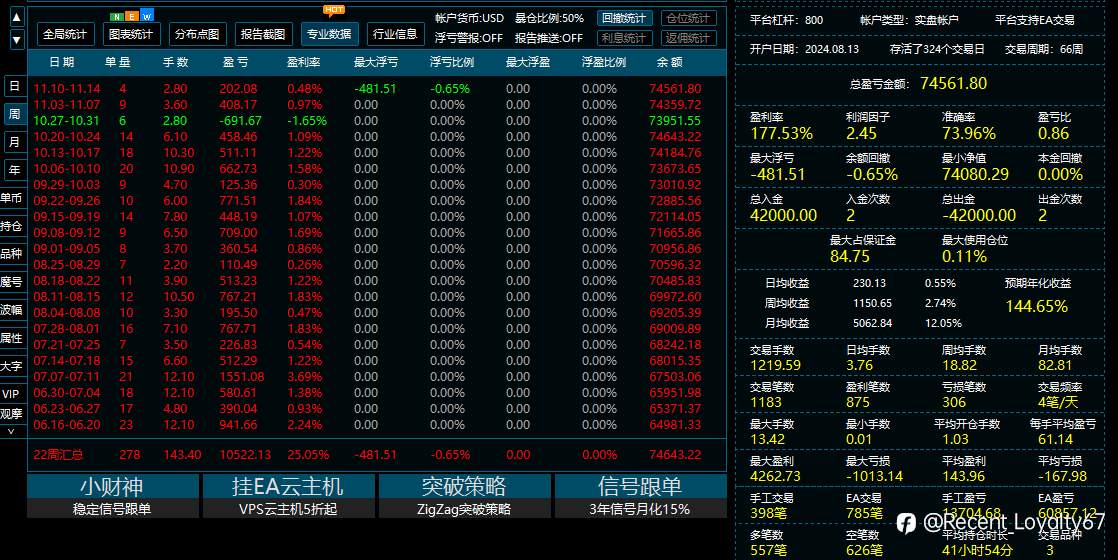 跑挺久时间的策略技术能兜底,1000也能起步 总营利353.46% 74561