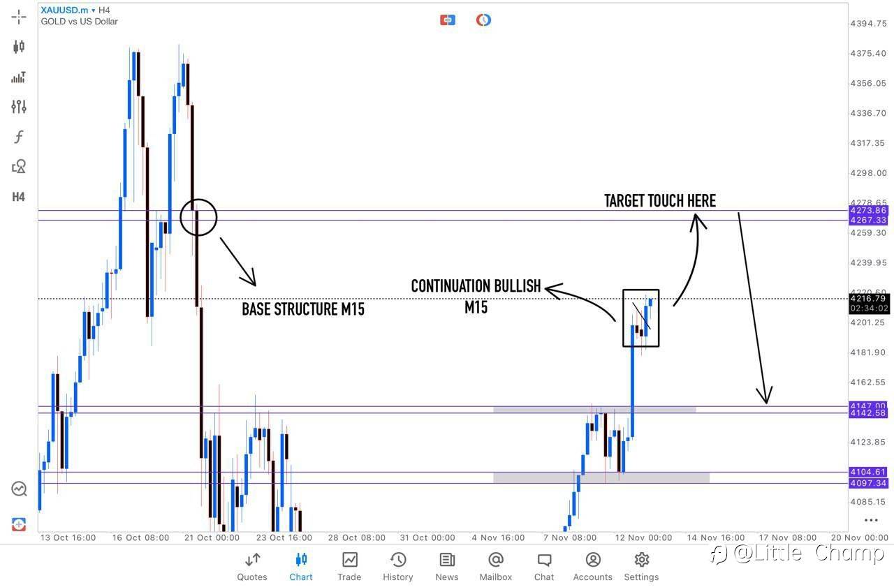 我的目标价位是黄金触及 4270 区域后可能出现小幅回调。