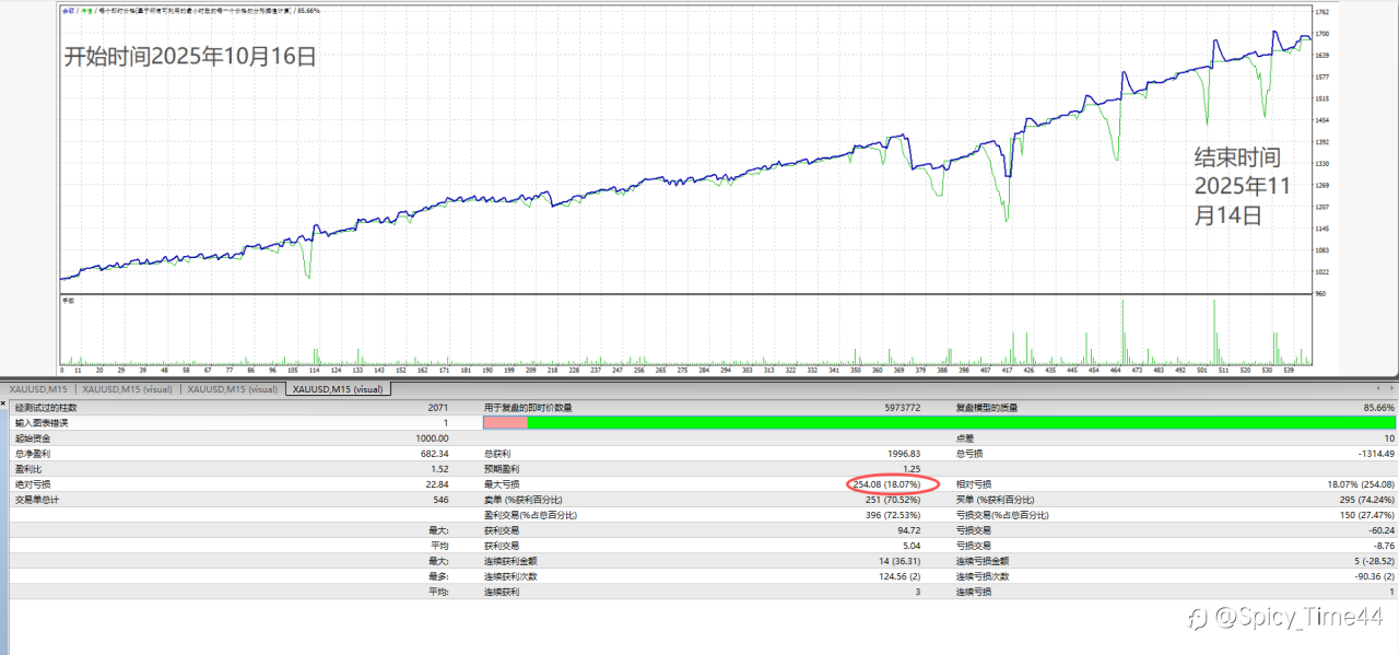 黄金全自动 ea 22天交易日本金1000美金 利润 682美金