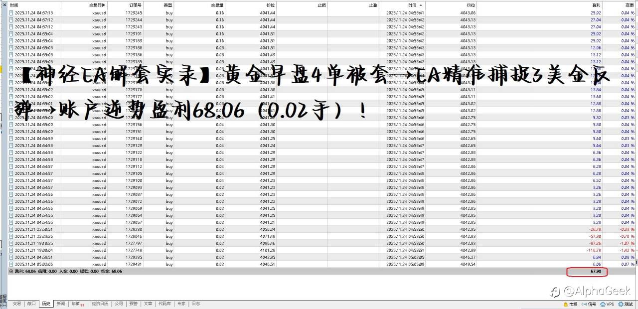 【神经网络EA|解套实战】早盘黄金多单被套?AI“精准拆弹”,实现扭亏为盈!