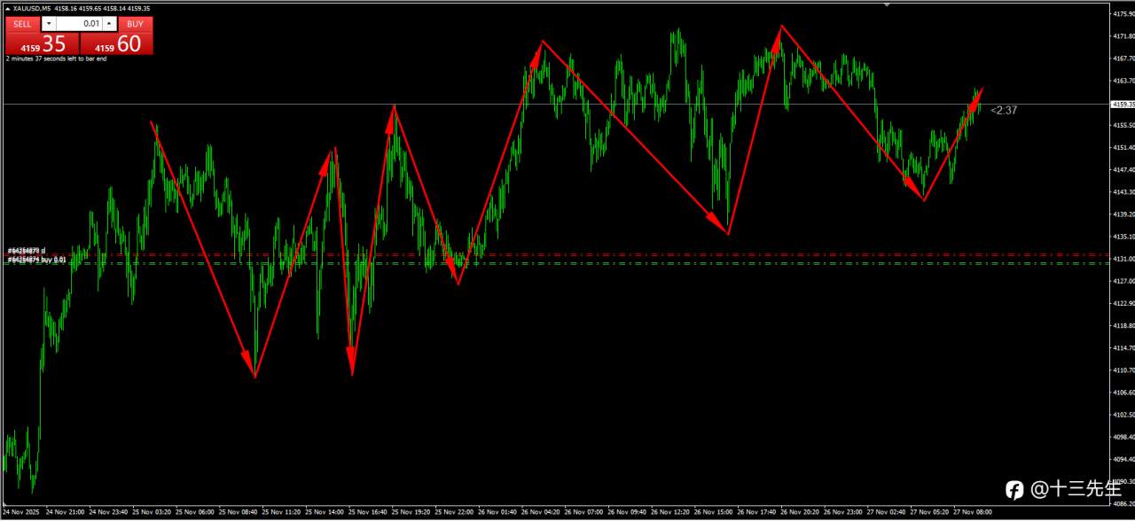 这两天5分钟线的波动太吓人,上下穿40个点。我们守住位置就可以了
