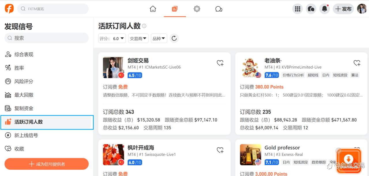 系统改版后的活跃订阅人数默认排名,剑姬交易已名列第一!值得纪念。 有些大佬历史订阅人数更多,可能评分低于6分,暂时被排除在默认榜单之外。 小小侥幸!