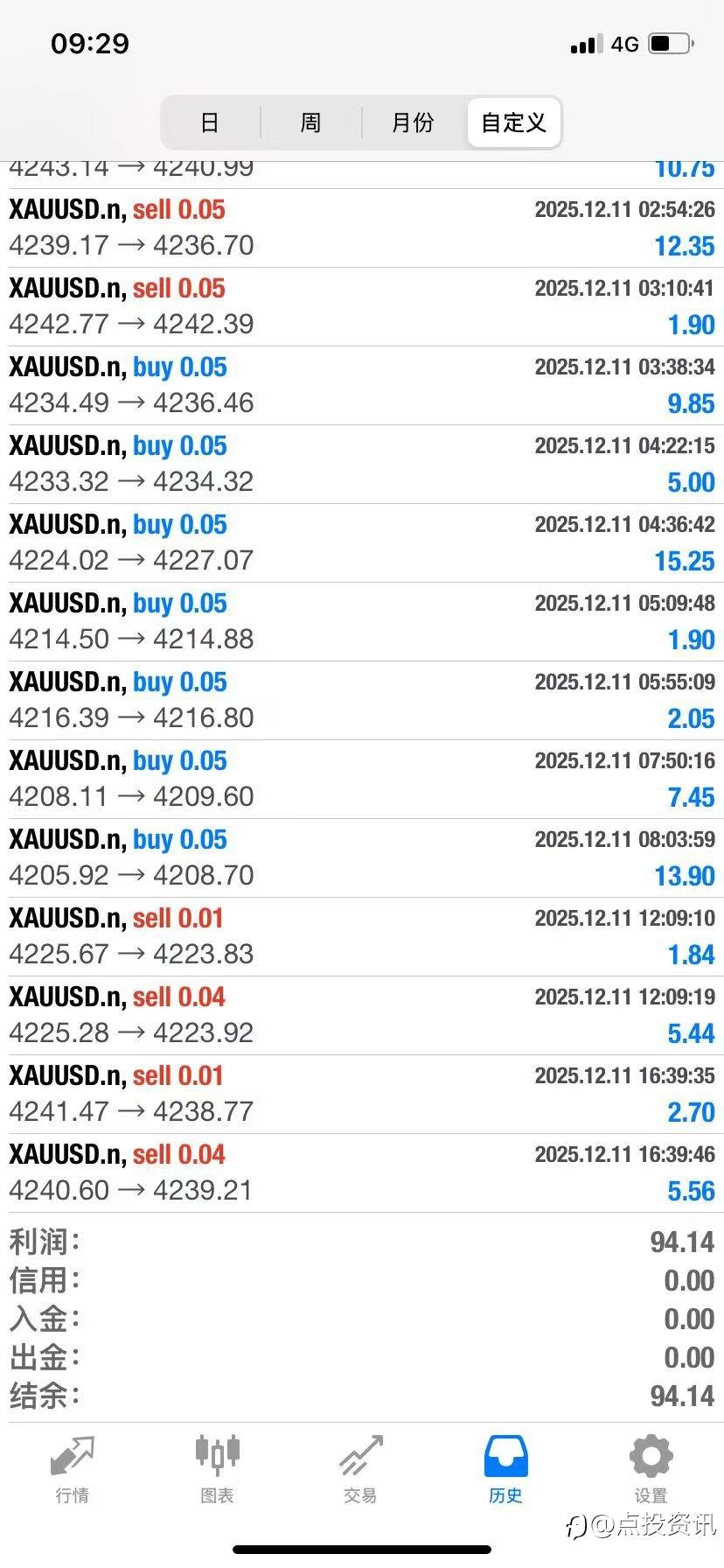 ✔12月11号收益94美金