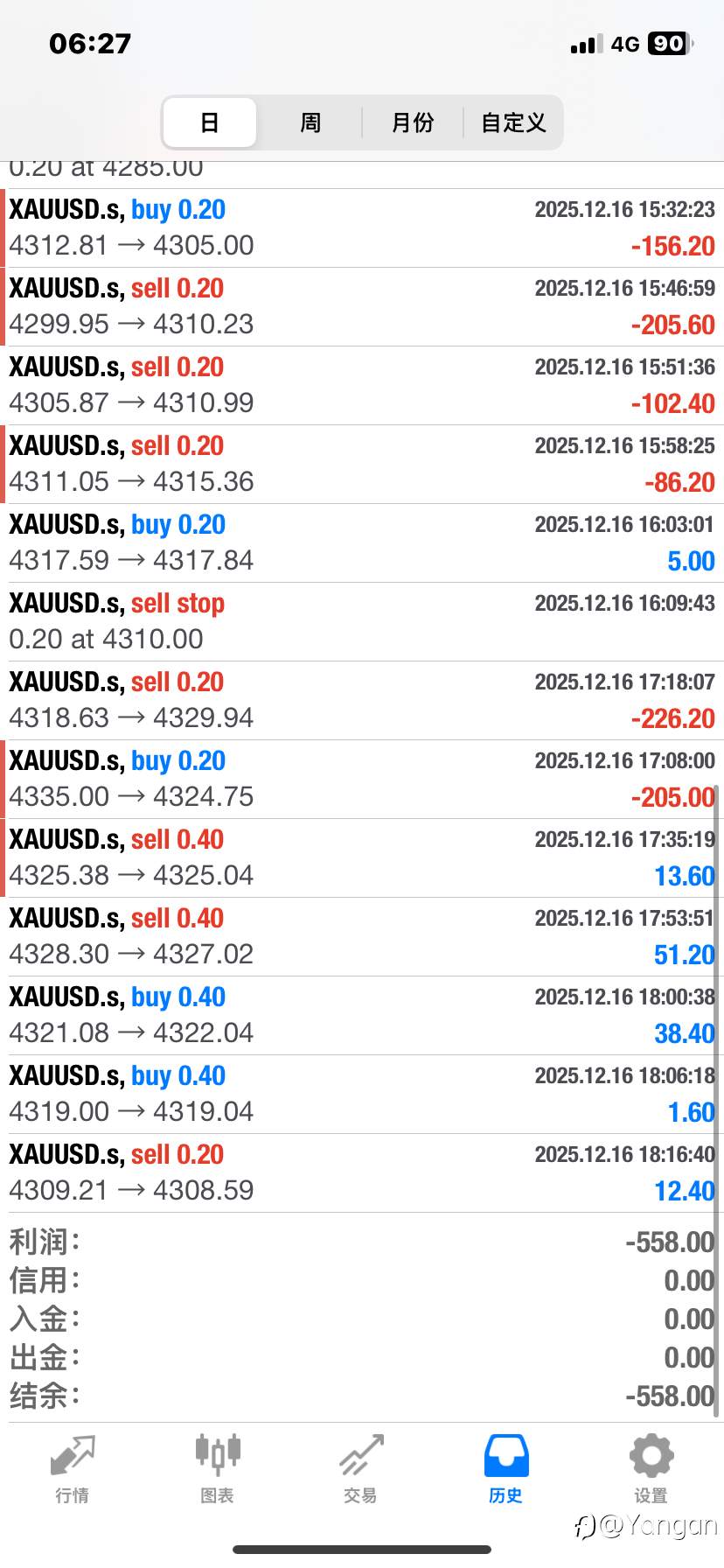 #每日交易打卡# 20251216,帐户年龄:2D。今日做单挺单,合计亏损558。亏损单6单,亏损金额980,最高单子亏损205,总结亏损原因:连续挂的3单成交后,立马反转打掉止损,也许进入了交易不适期。也许下次亏损了一单之后当日就该停止挂单了。帐户剩余1008。打卡第二天