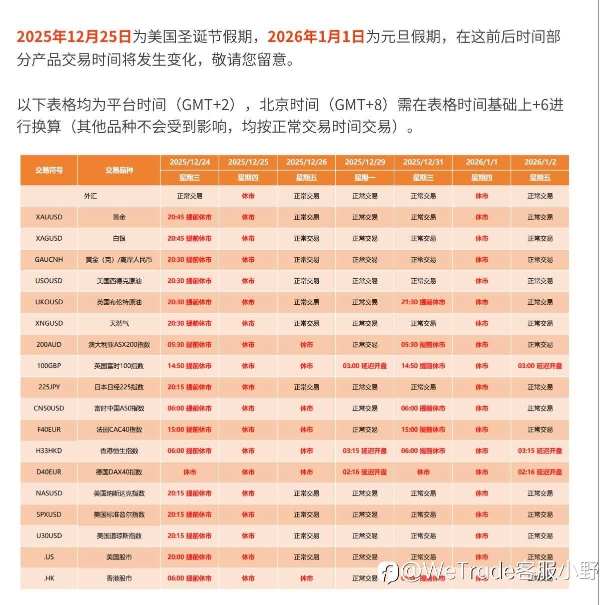 WeTrade敬请您留意双旦交易产品和客服时间变化#WeTrade众汇#