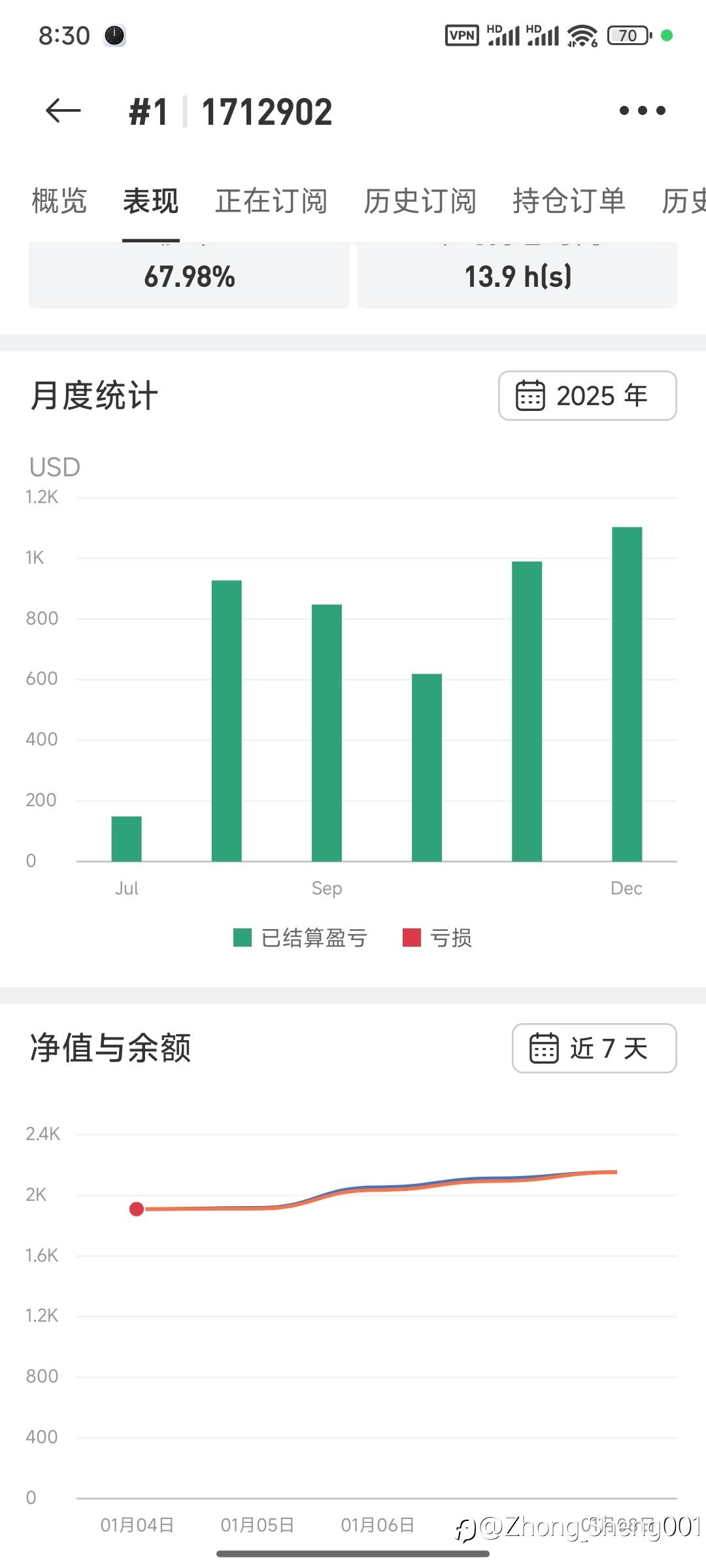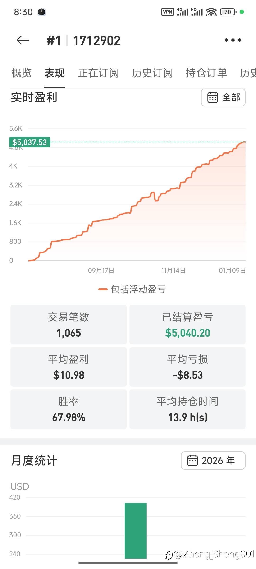 1月第一周结束,1#信号利润达到5000美金。附上2025年月盈利图。欢迎订阅。
