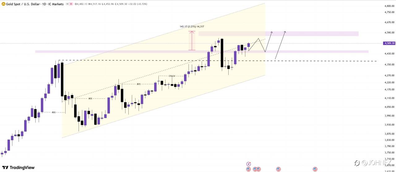 If the price holds above 4450 and the daily close is strong, the market may "skip" a deep pullback and head directly towards 4580