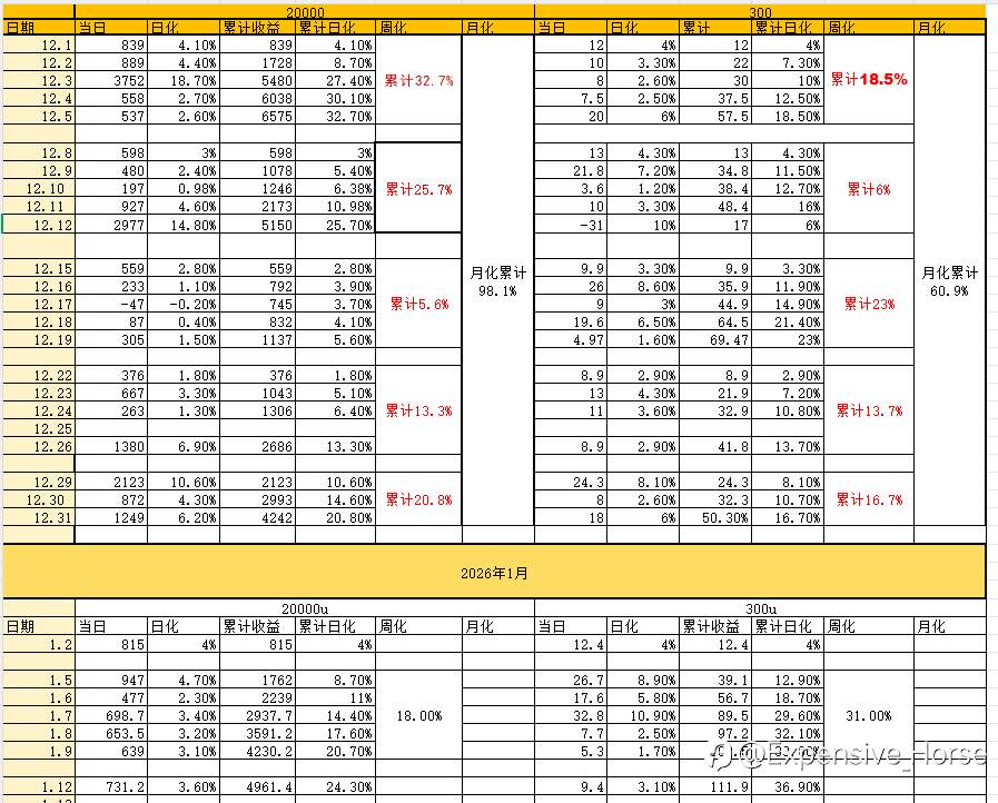 300u昨天跑了9.4u,日化在3.1%