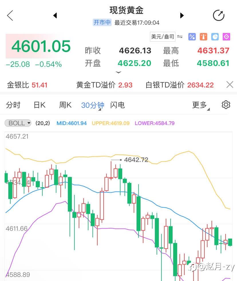 1小时拐头向上了,欧盘行情不大。依托4600整数这里,试一个多单,目标上看4612-20